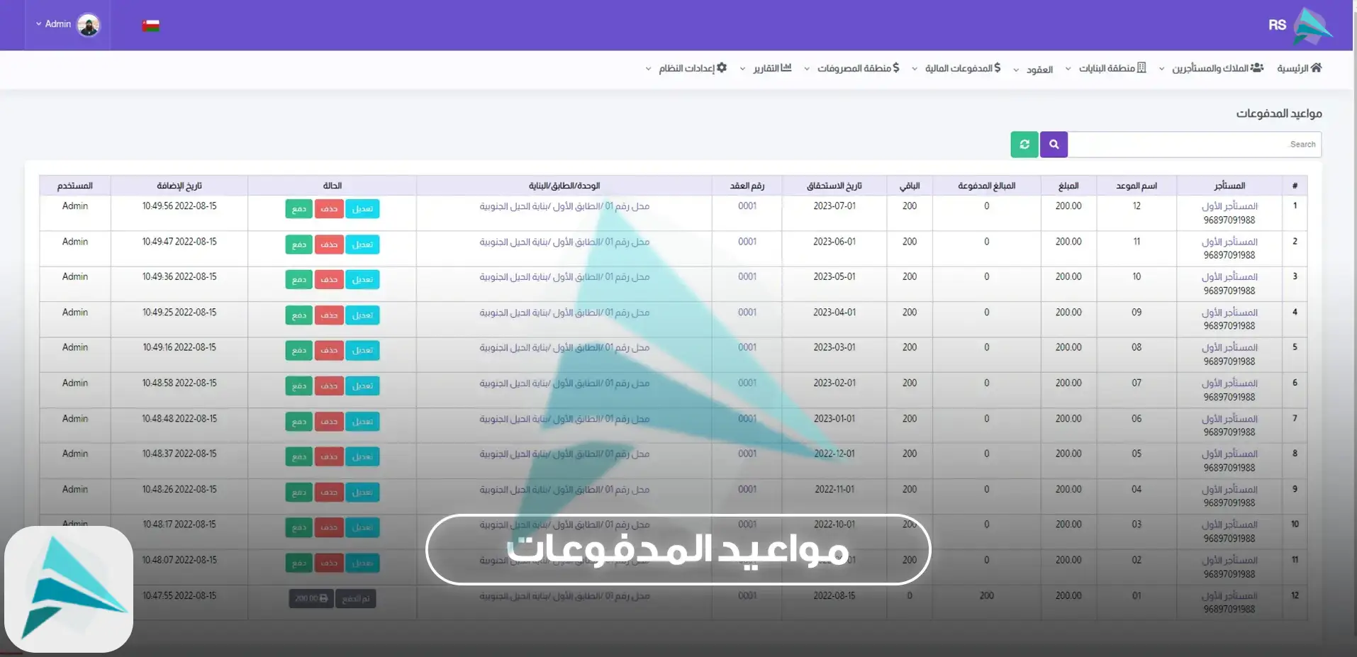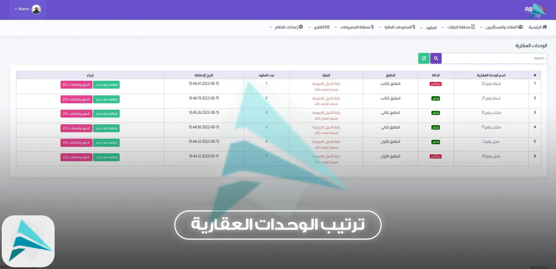 تم تصميم النظام بطريقة سهلة وبسيطة لإدارة وتنظيم تأجير الأملاك والوحدات العقارية، ويشمل الأقسام التالية: