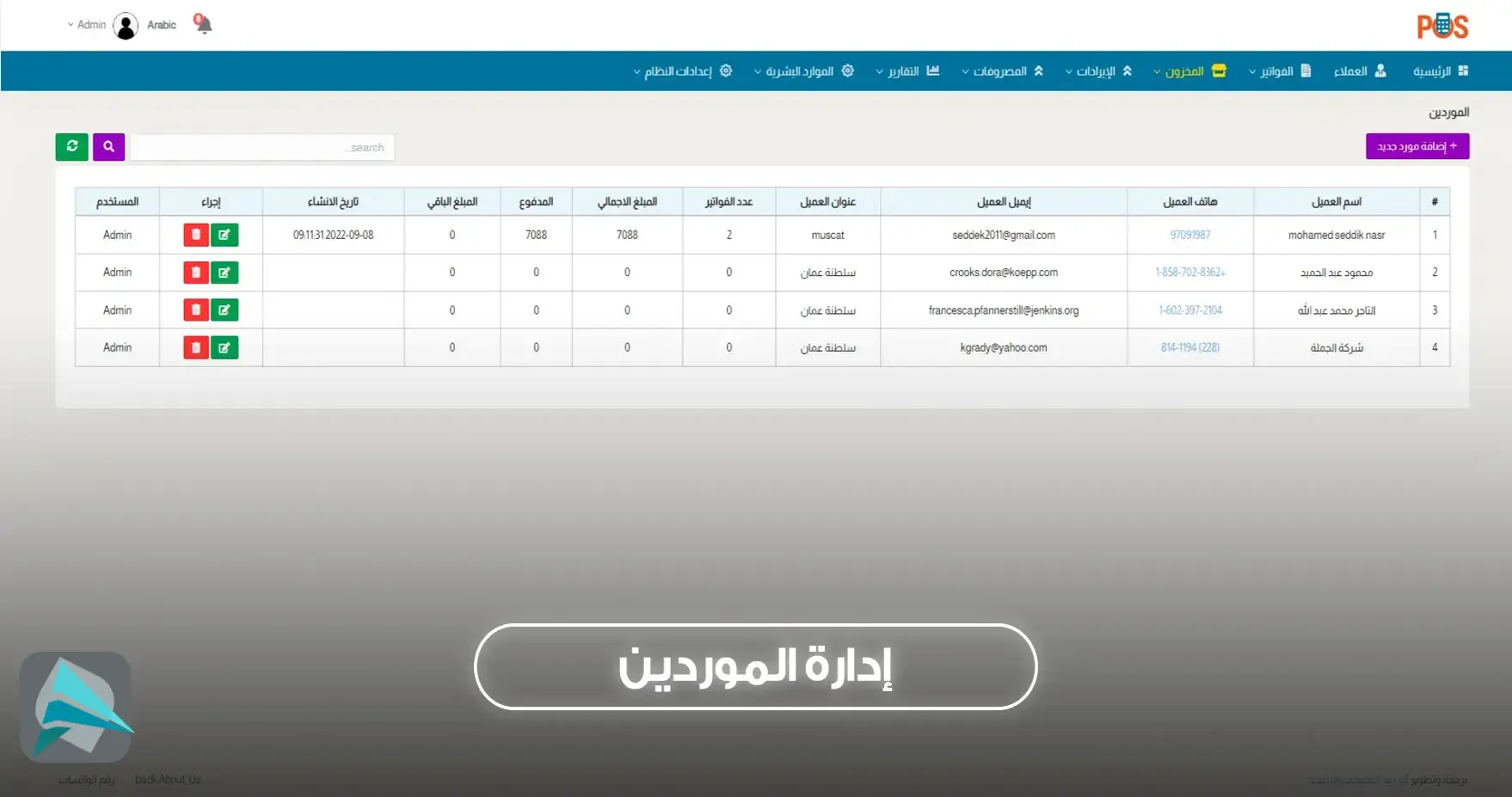برنامج إدارة المبيعات، المخزون، والفواتير | نظام نقاط البيع (POS) هو نظام إداري ومحاسبي متكامل ثنائي اللغة (العربية والإنجليزية)، يسهّل إدارة المبيعات، الفواتير، المخزون، الإيرادات، المصروفات، وعمليات الموارد البشرية للشركات بمختلف أحجامها.