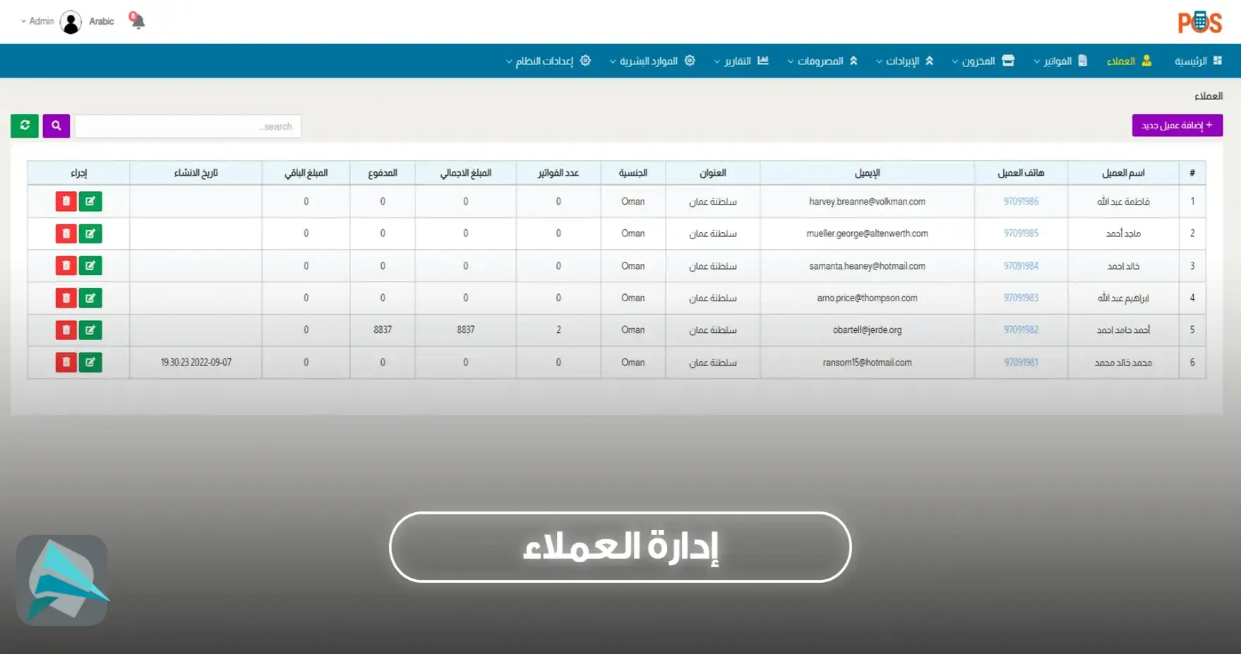 🔹 إدارة العملاء بالكامل مع ملفات تعريف تفصيلية