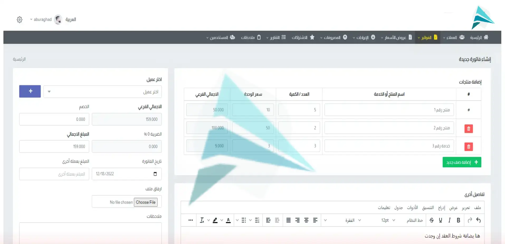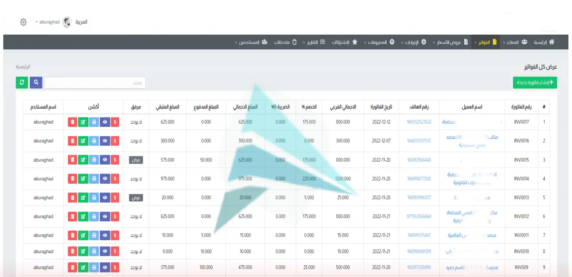 أهم خصائص ومميزات نظام إدارة العملاء والفواتير: