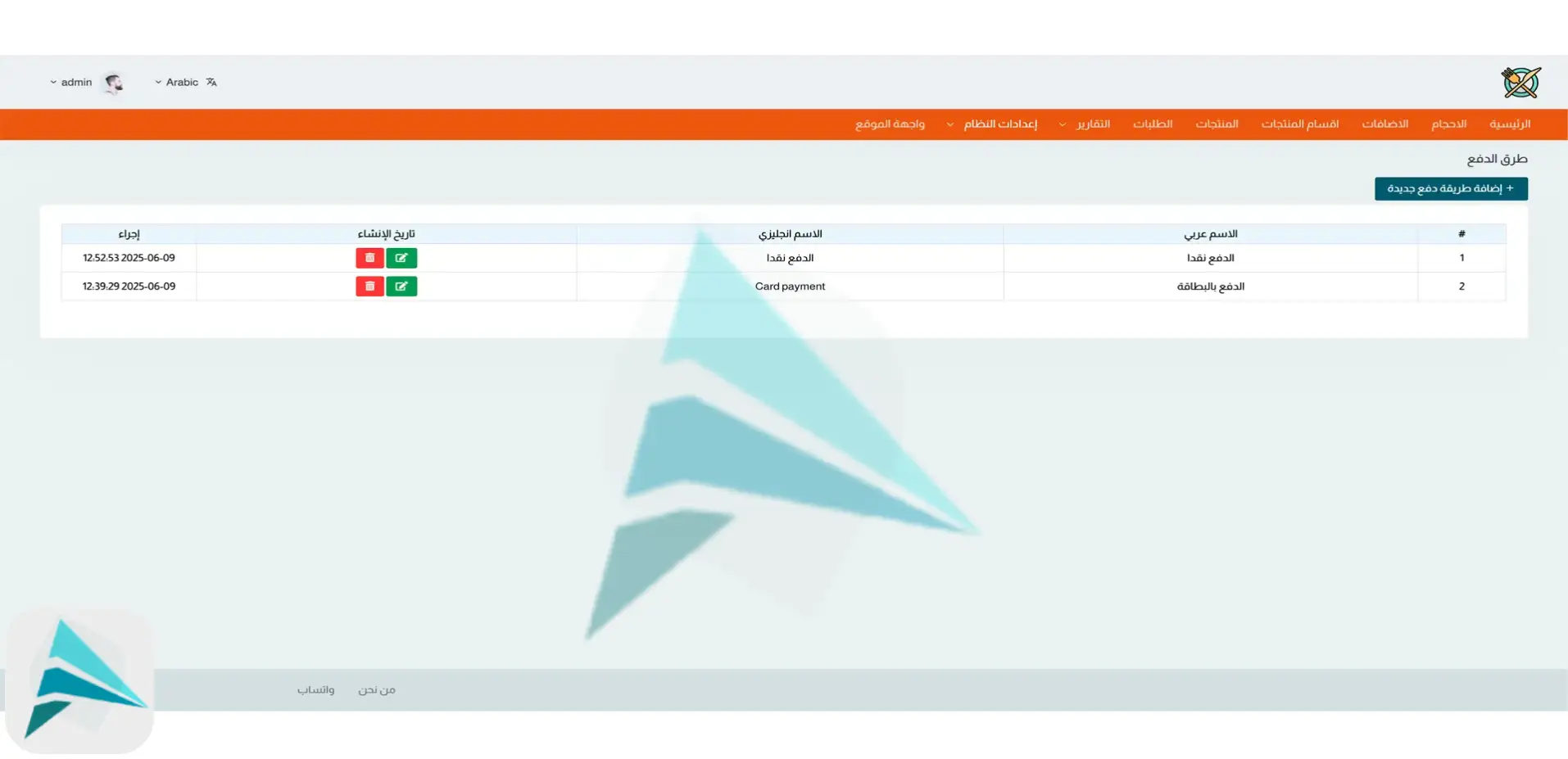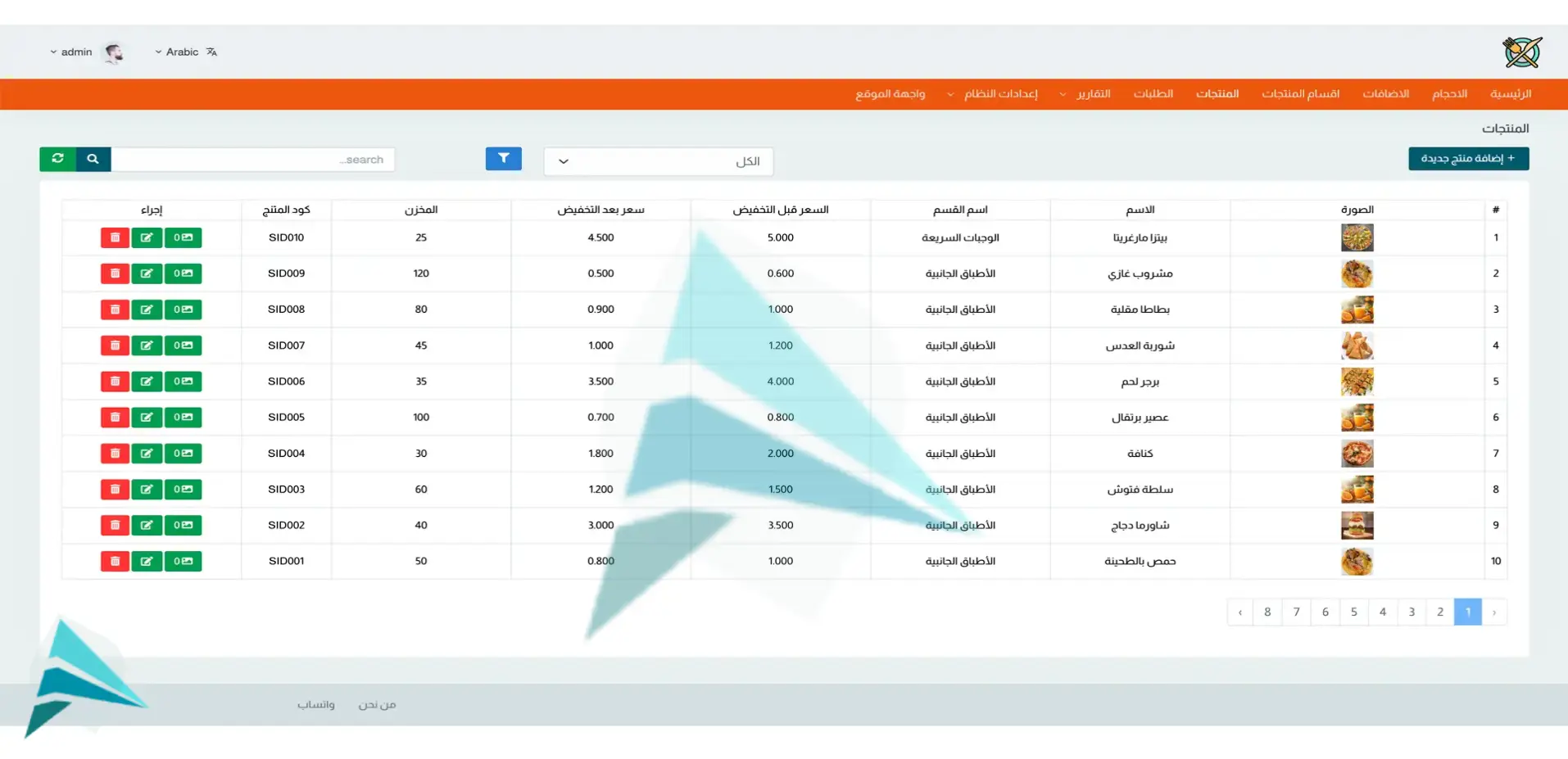 • إدارة الأحجام والاضافات والأقسام والمنتجات